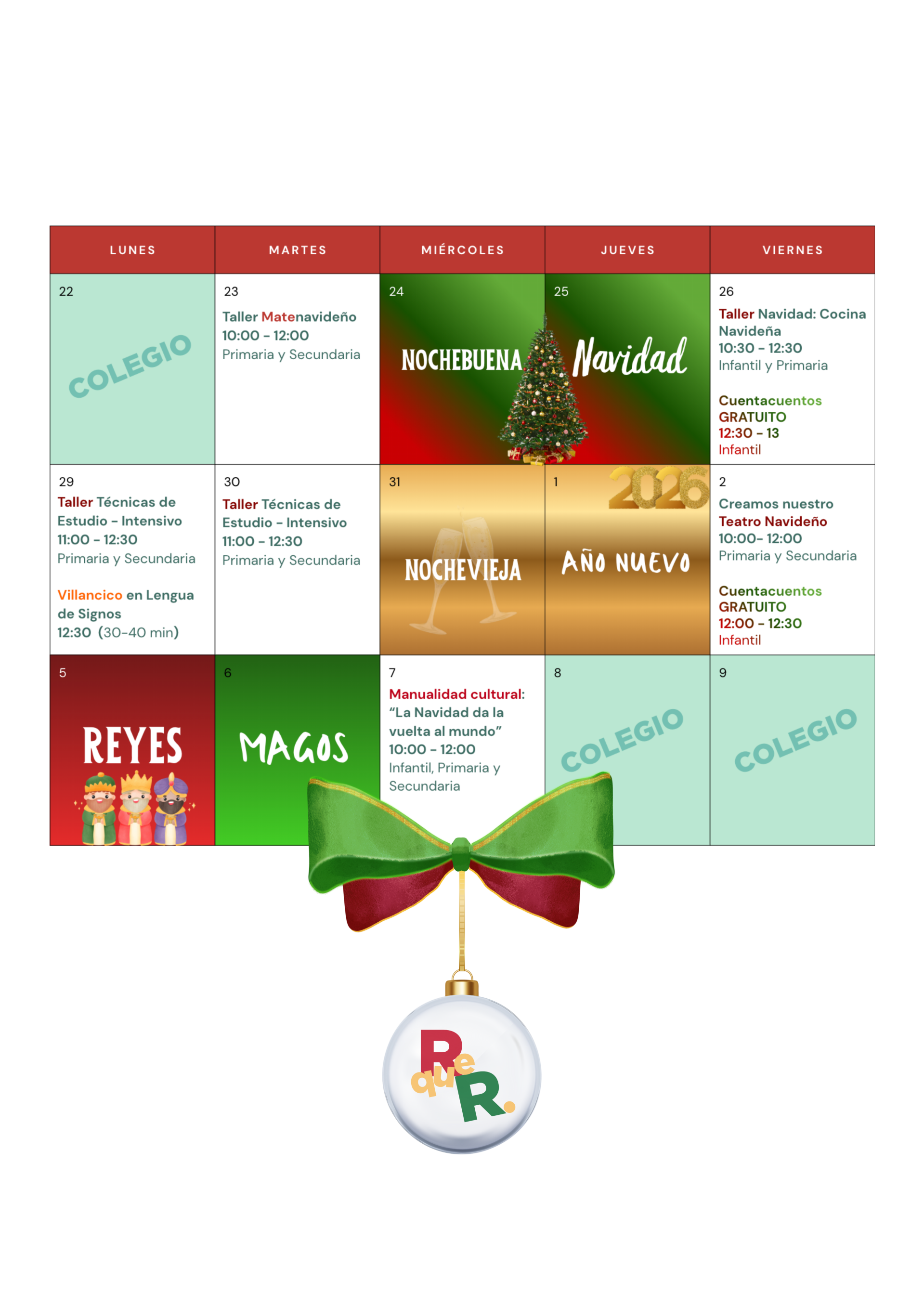 Explora nuestros talleres navideños organizados para que los peques disfruten de estas fiestas de una manera diferente.
